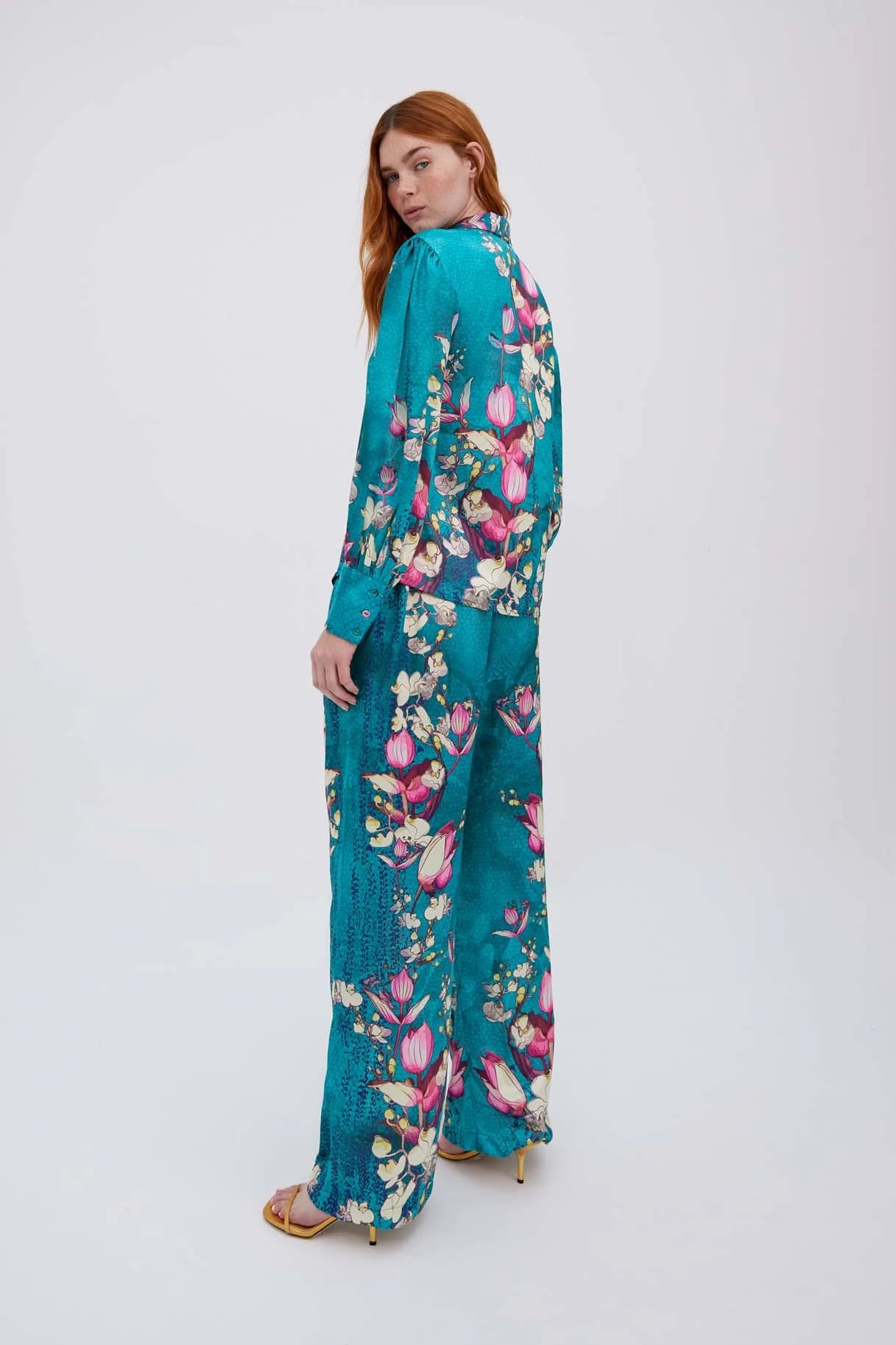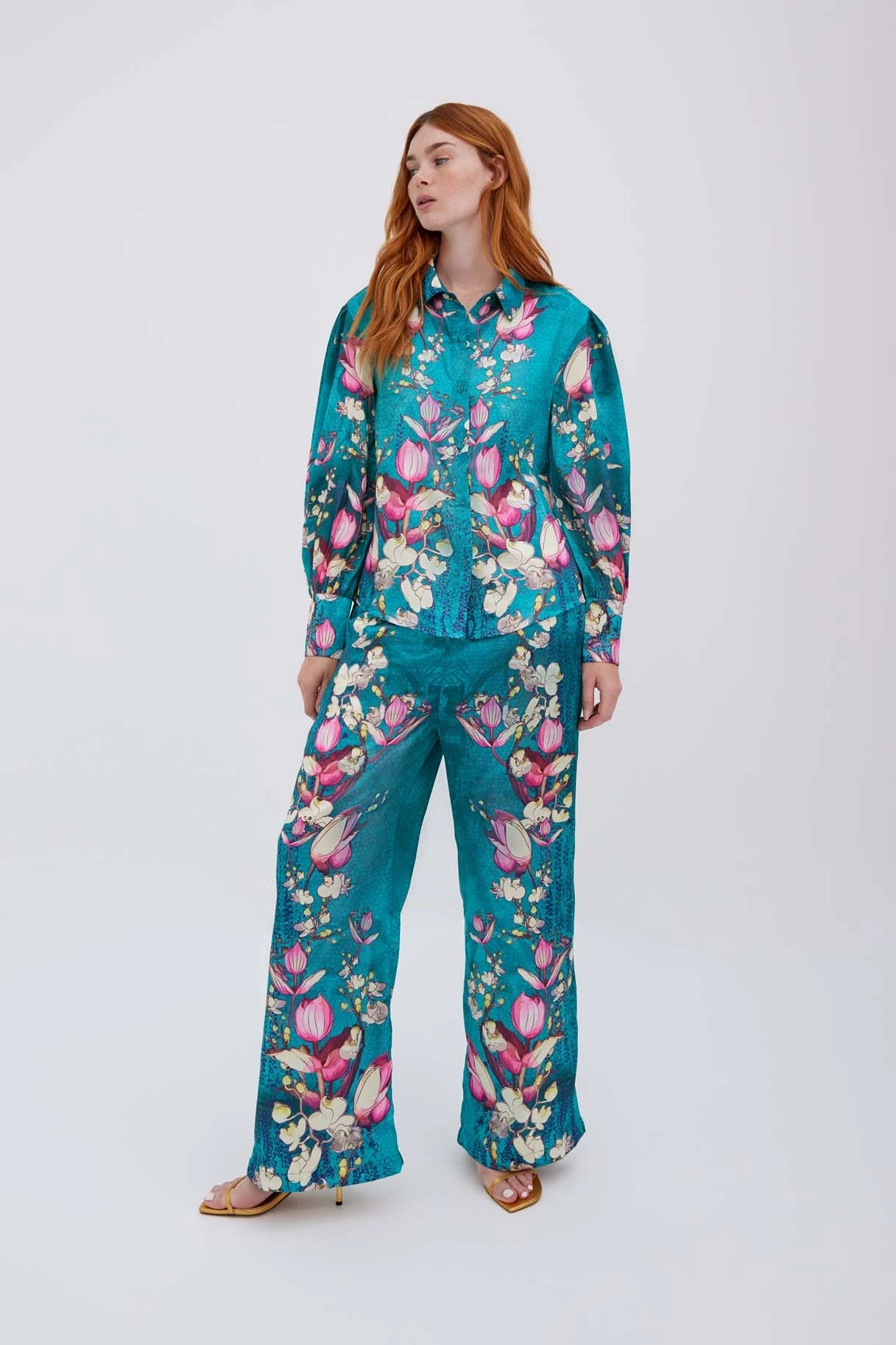 Introducing the Lauren Shirt, a perfect blend of elegance and style. Featuring a vibrant floral print on a rich teal background, this shirt is designed to make a statement. Ideal for both casual and formal occasions, the Lauren Shirt adds a touch of sophistication to any outfit. Pair it with jeans or tailored pants for a versatile look.